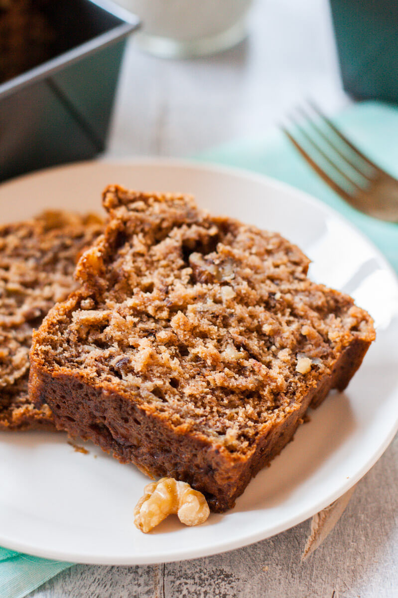 Everyone has their own idea about what makes the perfect banana bread. Some are into chunks of banana, some like it to taste like you’re eating a stick of butter with a slight banana flavor. Some like it to include eggs and cream and gobs of sugar. And let’s not pretend all those aren’t delicious – they definitely are (well, except for those chunks of banana…). But when I want banana bread to eat for breakfast without feeling like I might die of unhealthy before lunch time, this recipe is where I go.